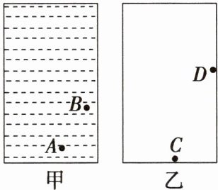 C.甲容器中p_A>p_B,乙容器中p_C=p_D