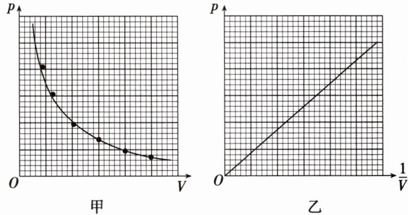 【情境导入】 在实验中我们作出了p -V图像和p -$\frac{1}{V}$图像,如图甲、乙所示。