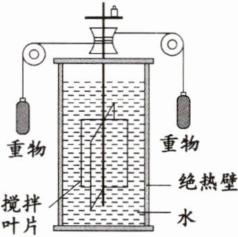 (1)让重物下落带动叶片搅拌容器中的水,引起水温