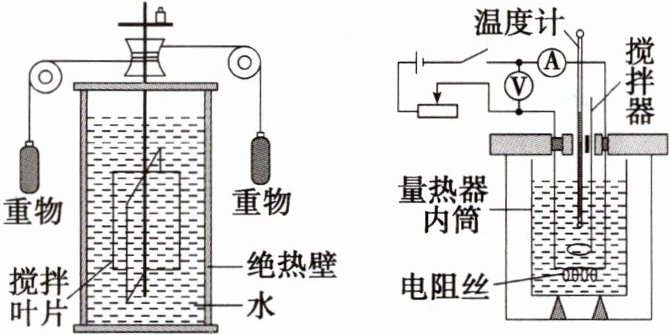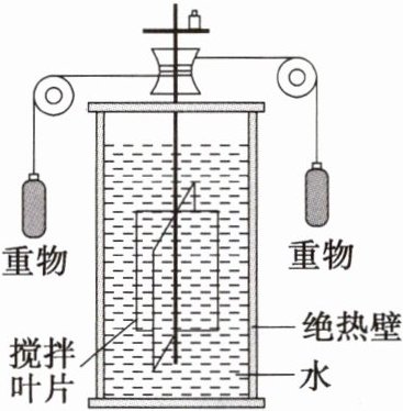 针对练.(多选)如图为焦耳实验装置图,用绝热性能良好的材料制作容器,重物下落带动叶片搅拌容器里的水,引起水温升高。关于这个实验,下列说法正确的是 (