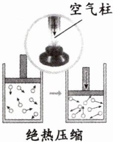 【情境导入】 如图所示,在有机玻璃筒底放少量浸有乙醚的棉花,用力迅速地压下活塞,观察棉花的变化。