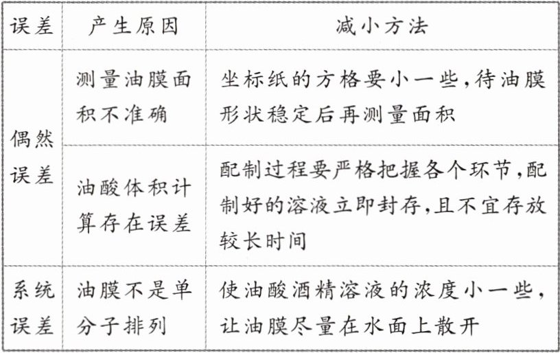 2. 待测油酸液面扩散后又收缩,要在稳定后再画轮廓。扩散后又收缩有两个原因: