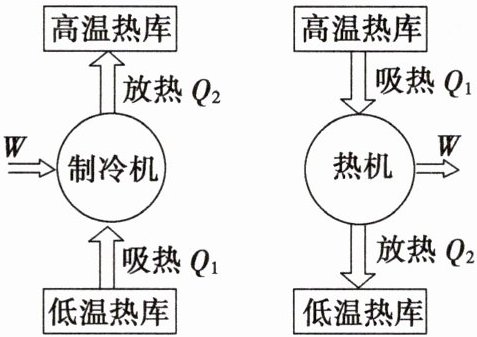 【师生互动】 如图分别为制冷机和热机的工作过程示意图,通过此图思考以下问题: