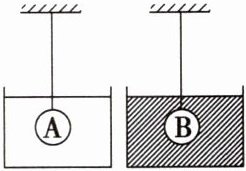 如图所示,A、B 是两个完全相同的球,分别浸没在水和水银中的同一深度,A、B 两球用同一种特殊材料制作,当温度稍微升高时,球的体积会明显变大,如果开始时水和水银的温度相同,且两液体温度同时缓慢升高同一值,两球膨胀后体积相等,则 (