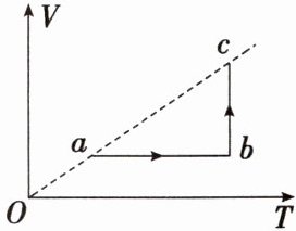 针对练2.AC 因直线$ac$过原点,根据$V = \frac{C}{p}T$($C$为常量)可知,气体在状态$c$的压强等于在状态$a$的压强,$b$点与原点连线的斜率小于$c$点与原点连线的斜率,可知在状态$b$的压强大于在状态$c$的压强,A正确,B错误;在$b \to c$的过程中温度不变,则气体的内能保持不变,C正确;在$a \to b$的过程中,气体的体积不变,则气体不对外做功,D错误。故选AC。