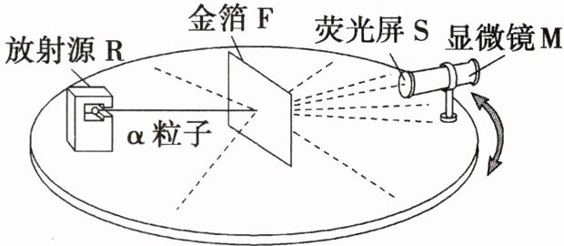 (2)α粒子带正电,α粒子受原子中占原子质量绝大部分的、集中在一起的、带正电的物质的斥力发生了大角度散射。