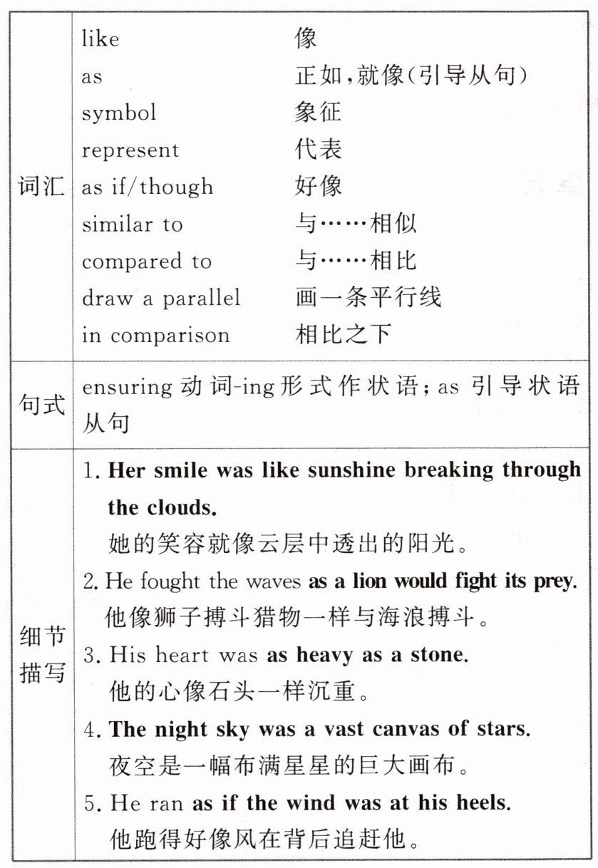 (我们小心翼翼地把滑翔机放在发射装置里,确保在关键时刻一切准备就绪;ensuring动词-ing形式作状语). With a deep breath,we launched our glider. (3)It glided gracefully through the air,its wings cutting through the wind like a well-aimed arrow