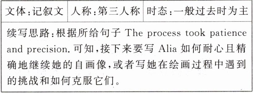 (2025·天域名校联考·读后续写)Alia生病错过了选课,只能选绘画→她更喜欢科学,觉得艺术不科学→绘画课的第一项作业是自画像,她感到不适应→老师教她从画圆和线条开始画肖像→Alia在老师的指导下开始尝试画自画像,意识到细节的重要性→……