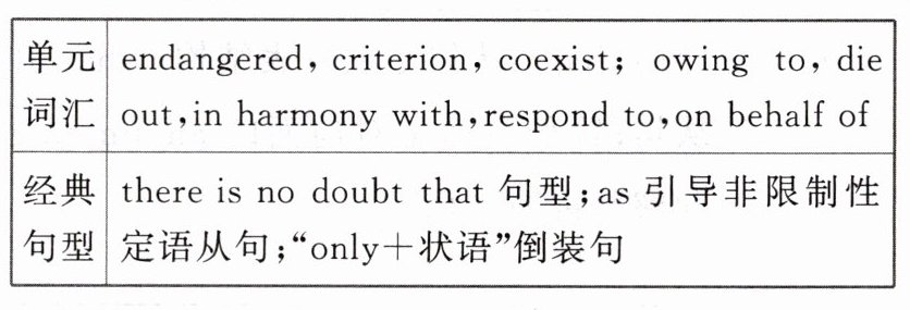 (毫无疑问,由于人类活动,许多濒临灭绝的野生动物正在灭绝;endanger,die out,owing to; there is no doubt that 句型)。(2)
