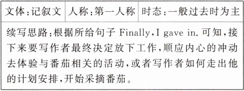 (2025·东北三校一模·读后续写)作者从小就擅长有计划地做事→如果学校作业未完,他会拒绝和朋友出去散步→作者不待在房间里,而是在楼上一个未使用的厨房里学习→作者的母亲担心他,用各种方法试图引诱他休息,但都未能成功→在大学期间,图书馆和宿舍取代了家里的厨房,作者依然坚持自己的计划和安排→即使在大学毕业后,作者对计划和时间表的需要和喜爱并未减少→然而,在今年夏天照看父母的房子时,作者意外地被番茄的生长所吸引,这使他开始考虑改变自己的习惯和计划→……