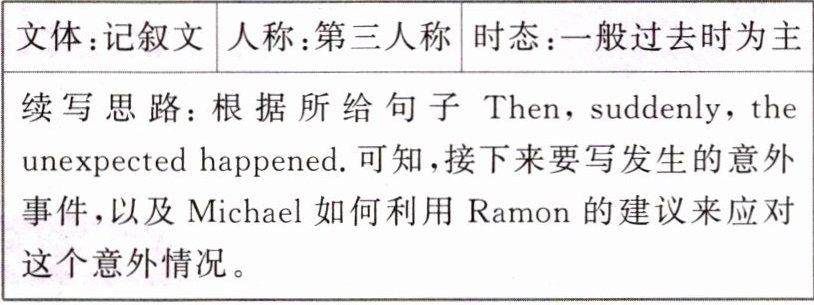 (2025·沈阳二模·读后续写)Michael 注意到走廊上站着喜欢欺负别人的 Frank→Frank 要求看 Michael 手里的书→Frank 拿过一本书,扔回给 Michael,同时嘲笑着离开→Michael 感到尴尬和愤怒,这时 Ramon 出现并帮助他→Michael 思考如何用善意而不是愤怒来解决问题→第二天,Michael 知道很快又要面对 Frank→……