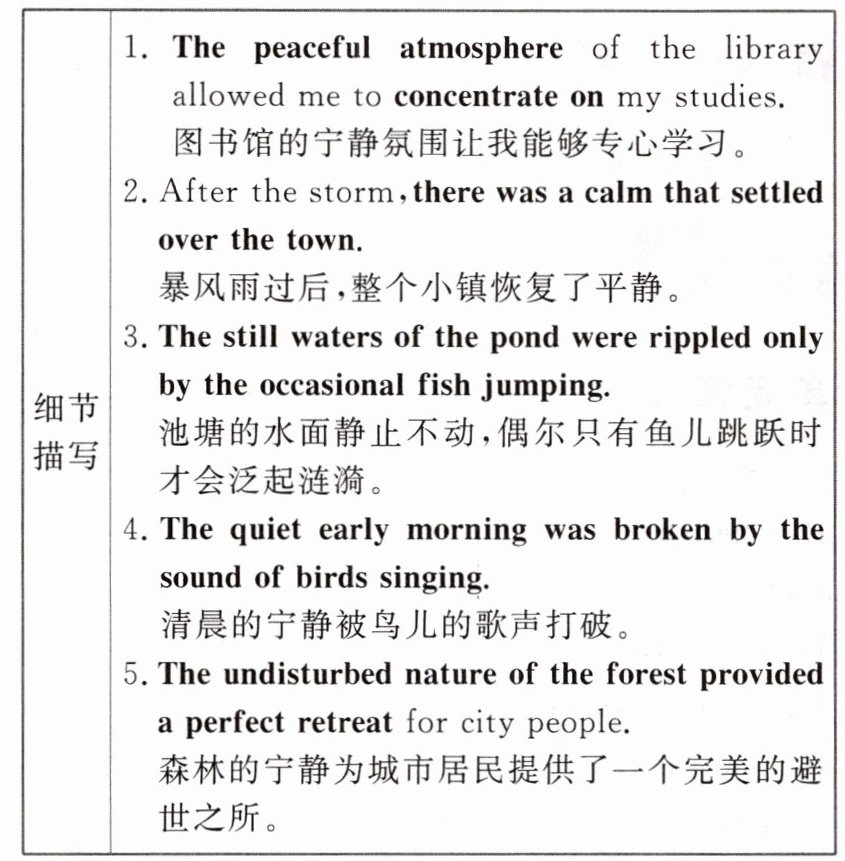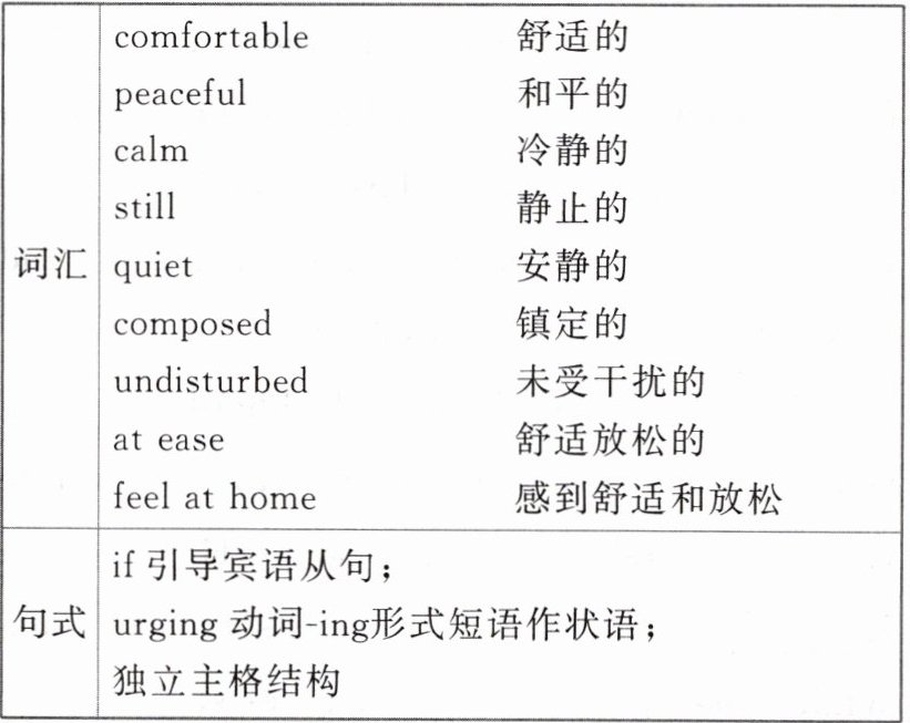 (当我走近农场时,一股烧烤的香味扑面而来,促使我走得更快;as引导时间状语从句;urging动词-ing形式短语作状语). We were totally immersed in the peaceful atmosphere,enjoying the delicate cuisines,talking about our interesting experiences and singing songs till the sun set. (3)The evening glow spreading across the farm,it was time for us to say goodbye