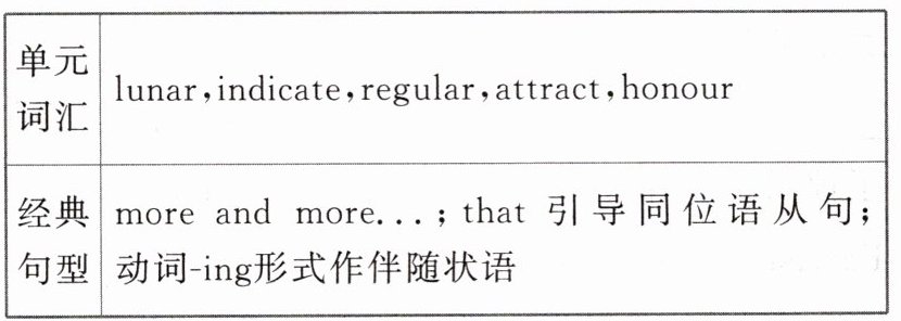 (它总是在秋季中期庆祝;that 引导同位语从句). Or rather,it exactly falls on the 15th day of the 8th month according to the Chinese lunar calendar.(3)(也被称为月亮节,这表明月亮在一年中的这个时候是最圆最亮的;indicate). Mooncakes are the most typical food of the Mid-Autumn Festival,which always attracts Chinese people to get together with their families,(4)(围坐在桌子旁,吃东西、聊天、欣赏月亮;动词-ing形式作伴随状语).