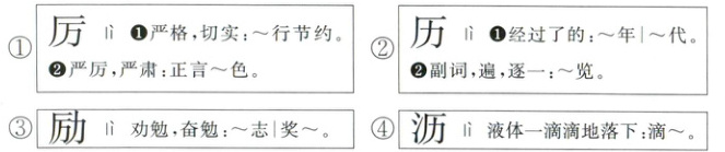 12.从右图中给下列加点字选择正确的意思,将序号填入括号内。