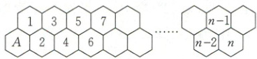 6. [2024·湖州中学期末]一只蜜蜂从蜂房$A$出发向右爬,每次只能爬向右侧相邻的两个蜂房(如图),例如:从蜂房$A$只能爬到$1$号或$2$号蜂房,从$1$号蜂房只能爬到$2$号或$3$号蜂房……以此类推,用$a_{n}$表示蜜蜂爬到$n$号蜂房的方法数,则$a_{2\ 022}a_{2\ 024}-a_{2\ 023}^{2}=$(