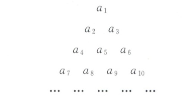 7. [2024·银川一中月考]已知等差数列$\{ a_{n}\}$中,$a_{3}=7$,$a_{6}=16$,将此等差数列的各项排成如下三角形数阵: