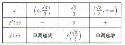 所以函数$f(x)$的单调递减区间为$(0,\frac{\sqrt{3}}{3})$,单调递增区间为$(\frac\sqrt{3}{3},+\infty)$.