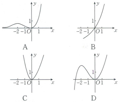 2.A【解析】因为$y^{\prime}=2xe^{x}+x^{2}e^{x}=x(x + 2)e^{x}$,所以当$x<-2$或$x>0$时,$y^{\prime}>0$,函数$y=x^{2}e^{x}$单调递增;当$-2<x<0$时,$y^{\prime}<0$,函数$y=x^{2}e^{x}$单调递减,排除B,C.又$y=x^{2}e^{x}>0$,所以排除D.故选A.