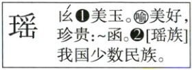本学期,班上新转来一位名叫王子瑶的同学。学了“遥、摇”等字,我猜“瑶”字的读音可能是()(①tāo ②yáo√ ③yǎo)(填序号)。“瑶”是 结构的字,用部首查字法查字典,应先查 部,再查 画。“瑶”在字典中有两个意思,在名字“王子瑶”中的意思应该是()(看右上