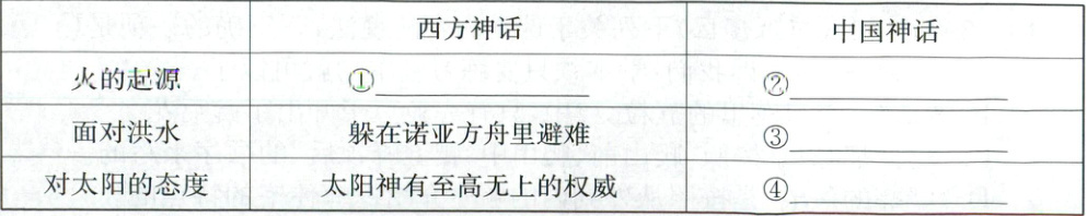 (1)选择相对应的神话故事,在表格中的横线上填写正确的选项。
