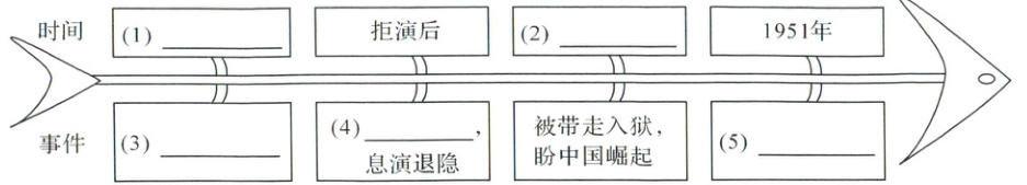 1. 关注主要人物和事件,将鱼骨图补充完整。