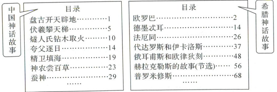 5.这篇文章让我们想到很多神话故事书,以下是两本神话故事书的目录。(9分)