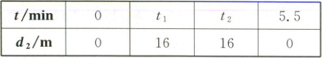 解得$t_{2} = \frac{23}{6}$。$\therefore t_{2} - t_{1} = \frac{11}{6}$