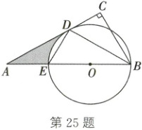 25. (2025·内江)如图,在$\triangle ABC$中,$\angle C = 90^{\circ}$,$\angle ABC$的平分线$BD$交$AC$于点$D$,$O$是边$AB$上一点,以点$O$为圆心、$OB$长为半径作圆,$\odot O$恰好经过点$D$,交$AB$于点$E$。