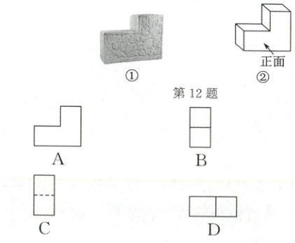 12. (2025·陕西)上马石是古人上下马的工具,形状如图①所示。它可以看作如图②所示的几何体,该几何体的俯视图为(
