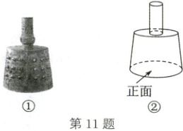 11. (2025·福建)福建博物院收藏着一件“镇馆之宝”——云纹青铜大铙(如图①)。云纹青铜大铙是西周乐器,鼓饰变形兽面纹,两侧饰云雷纹,浑大厚重,造型稳重古朴,代表了福建古代青铜文化的辉煌。图②为其示意图,它的主视图是(