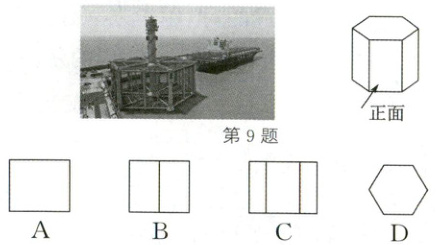 9. (2025·山东)如图,我国“深蓝2号”大型智能深海养殖网箱的主体形状是一个正六棱柱,其示意图的主视图是(