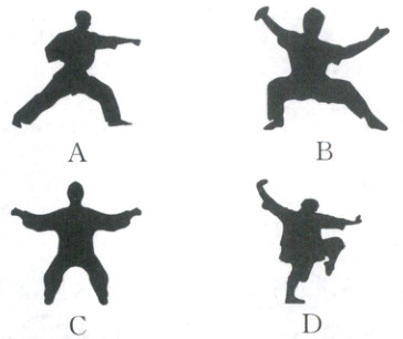 10. (2025·湖南)武术是我国传统的体育项目。下列武术动作图形是轴对称图形的为(
