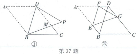$\because$四边形$ABCD$是平行四边形,$\therefore AD=BC$,$\angle DAB=\angle BCD$,$\therefore DP=BC$,$\angle DPB=\angle BCD$。