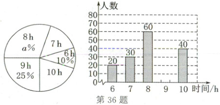 36. (2025·龙东地区)2025 年 6 月 5 日是我国的第 11 个环境日,育华中学八年级学生积极参加公益活动,为了解活动时间(单位:h),张老师随机抽取了该校八年级 $ m $ 名学生进行问卷调查,用得到的数据绘制出如图所示的两幅不完整的统计图.请根据相关信息,解答下列问题: