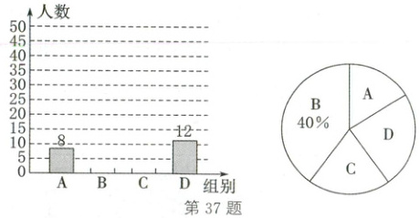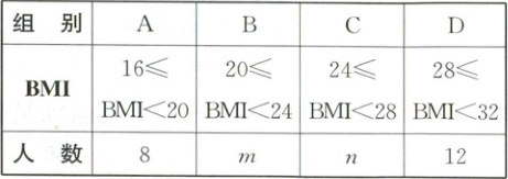 37. (2025·新疆)根据国家卫生健康委员会等 16 个部门联合印发的《“体重管理年”活动实施方案》有关要求,2025 年将持续推进“体重管理年”活动.目前,国际上常用身体质量指数(BMI)来衡量胖瘦程度,其计算公式为 $ BMI=\frac{体重(单位:kg)}{身高^{2}(单位:m^{2})} $,BMI 数值标准为 $ BMI<18.5 $ 为偏瘦;$ 18.5≤BMI<24 $ 为正常;$ 24≤BMI<28 $ 为偏胖;$ BMI≥28 $ 为肥胖.某单位随机抽取 50 名员工,测得他们的身高、体重数据,将所得数据进行了整理、描述.