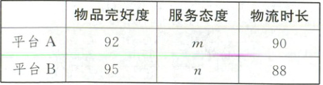 (2)求表格中 $ m $,$ n $ 的值,并以此为依据,判断哪家平台服务态度更好;