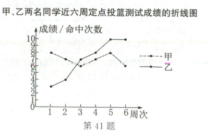 (3)为了备战校际篮球联赛,该校计划从参加篮球活动的甲、乙两名同学中选拔一人加入校篮球队.已知甲、乙两名同学近六周定点投篮测试成绩(每次测试共有 10 次投篮机会,以命中次数作为测试成绩)如图所示,你建议选择哪名同学加入校篮球队,请说明理由.