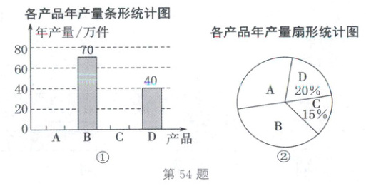a. 调整前,各产品年产量的不完整的条形统计图(图①)和扇形统计图(图②).