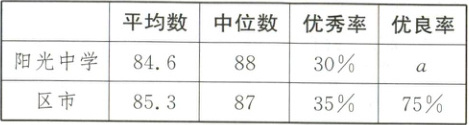阳光中学为了解本校参赛学生科技素养测评情况,整理了这次活动本校及所在区市参赛学生测评总成绩的相关数据,部分信息如下: