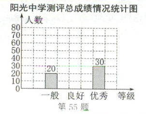 55. (2025·威海)为深入实施科教兴国战略,加快提升广大青少年科技素养,某区市开展了科技素养测评活动,内容包括知识测试和实践创新两部分.所有参赛学生的总成绩均不低于70分;总成绩$x$(单位:分)分为三个等级:优秀($90\leqslant x<100$),良好($80\leqslant x<90$),一般($70\leqslant x<80$);总成绩80分及以上人数占总人数的百分比是优良率.
