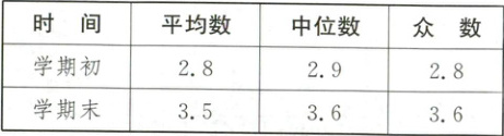 (3) 有提高. 理由: 学期末调查数据的平均数、中位数、众数均高于学期初调查数据的平均数、中位数、众数.