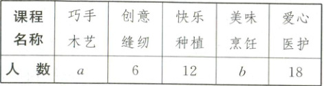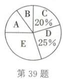 39. (2025·泸州)某市教育综合实践基地开设有A:巧手木艺;B:创意缝纫;C:快乐种植;D:美味烹饪;E:爱心医护五门课程.某校组织八年级学生到该基地开展活动,一段时间后,基地采用随机抽样的方式,在该校八年级抽取部分学生开展了“我最喜欢的综合实践课程”的问卷调查,并根据调查所收集的数据进行整理,绘制了如下不完整的统计表和如图所示的不完整的统计图.