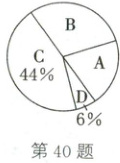 40. (2025·长沙)2025年5月18日,湖南省第三届大中小学阅读教育论坛在长沙举行.论坛聚焦美育与阅读融合.为探索美育与阅读融合的新路径,某校举行了以“美育与阅读融合”为主题的知识竞赛,竞赛成绩以等第形式呈现,随机抽取了部分参赛学生的成绩进行统计,得到如下待完善的统计表和如图所示的不完整的统计图(A代表优秀、B代表良好、C代表一般、D代表合格).