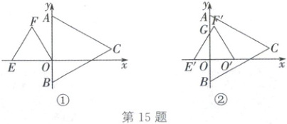 15. (2025·天津)在平面直角坐标系中,O为原点,等边三角形ABC的顶点A,B的坐标分别为$(0,2)$,$(0,-1)$,点C在第一象限,等边三角形EOF的顶点E的坐标为$(-\sqrt{3},0)$,顶点F在第二象限。