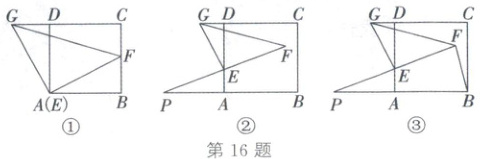 16. (2025·甘肃)已知四边形ABCD是正方形,E是边AD上一动点(点D除外),$\triangle EFG$是直角三角形,$EG = EF$,点G在CD的延长线上。