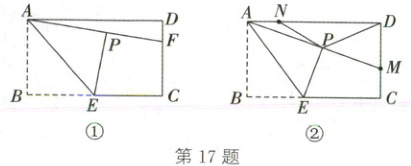 17. (2025·南充)在矩形ABCD中,$AB = 10$,$AD = 17$,E是线段BC上异于点B的一个动点,连接AE,把$\triangle ABE$沿直线AE折叠,使点B落在点P处。