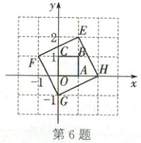 6. (2025·河北)在平面直角坐标系中,横、纵坐标都是整数的点称为整点。如图,正方形$EFGH$与正方形$OABC$的顶点均为整点。若只将正方形$EFGH$平移,使其内部(不含边界)有且只有$A$,$B$,$C$三个整点,则平移后点$E$的对应点的坐标为(