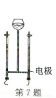 7. (2025·山西)氢气是一种绿色清洁能源,可通过电解水获得(如图)。实践小组通过实验发现,在电解水的过程中,生成物氢气的质量$y(g)$与分解的水的质量$x(g)$满足我们学过的某种函数关系。下表是一组实验数据: