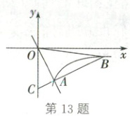 13. (2025·宜宾)如图,$O$是坐标原点,函数$y = -\frac{4}{x}$($x > 0$)的图象与直线$y = -2x$交于点$A$,点$B$在函数$y = -\frac{4}{x}$($x > 0$)的图象上,直线$AB$与$y$轴交于点$C$,连接$OB$.若$AB = 3AC$,则$OB$的长为(