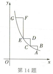14. (2025·广西)如图,在平面直角坐标系中,“双曲线阶梯”$ABCDEFG$的所有线段均与$x$轴平行或垂直,且满足$BC = DE = FG = 1$,点$A$,$C$,$E$,$G$均在双曲线$y = \frac{k}{x}$的一支上.若点$A$的坐标为$(4,\frac{3}{2})$,则第三级阶梯的高$EF$等于(